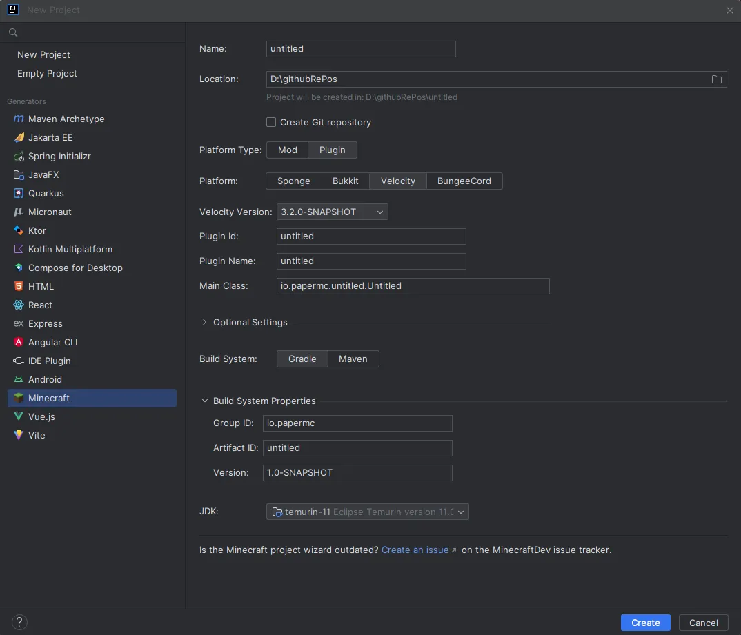 Build SystemThe build system you want to use. Paper recommends using Gradle but you can use Maven if you prefer.